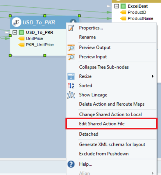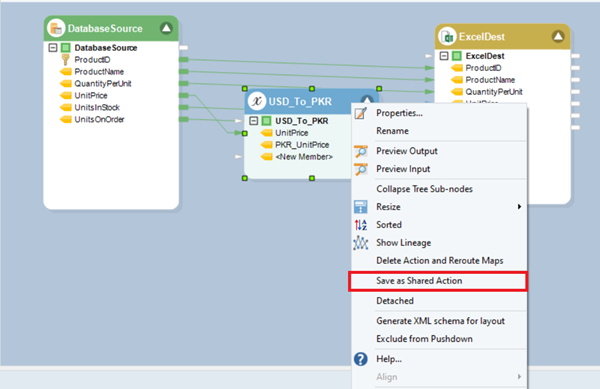 Shared actions in Astera allow sharing an item or an action at multiple places. The item that needs to be used repeatedly can be extracted into a Shared Action, which can then be used wherever needed. Moreover, any changes or updates that need to be made to an item can be made only in the Shared Action, and all occurrences of the Shared Action item will automatically accommodate all the changes.
