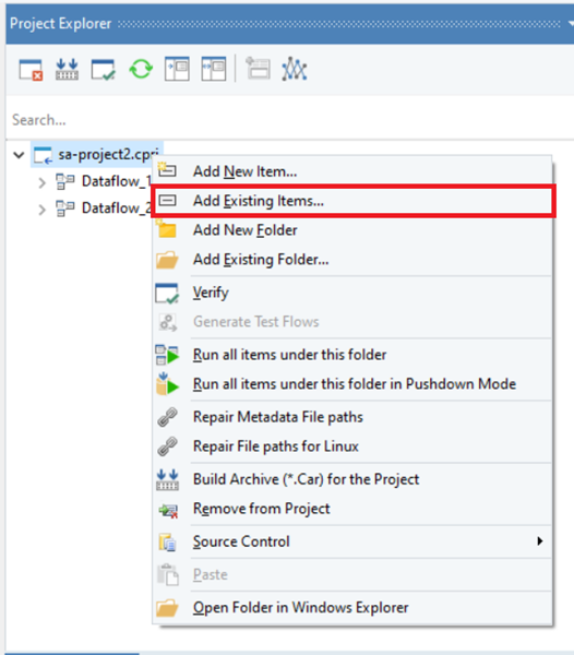 The Shared Action file has been saved. To add it to the project, right-click on your project in the Project Explorer and select Add Existing Items.
