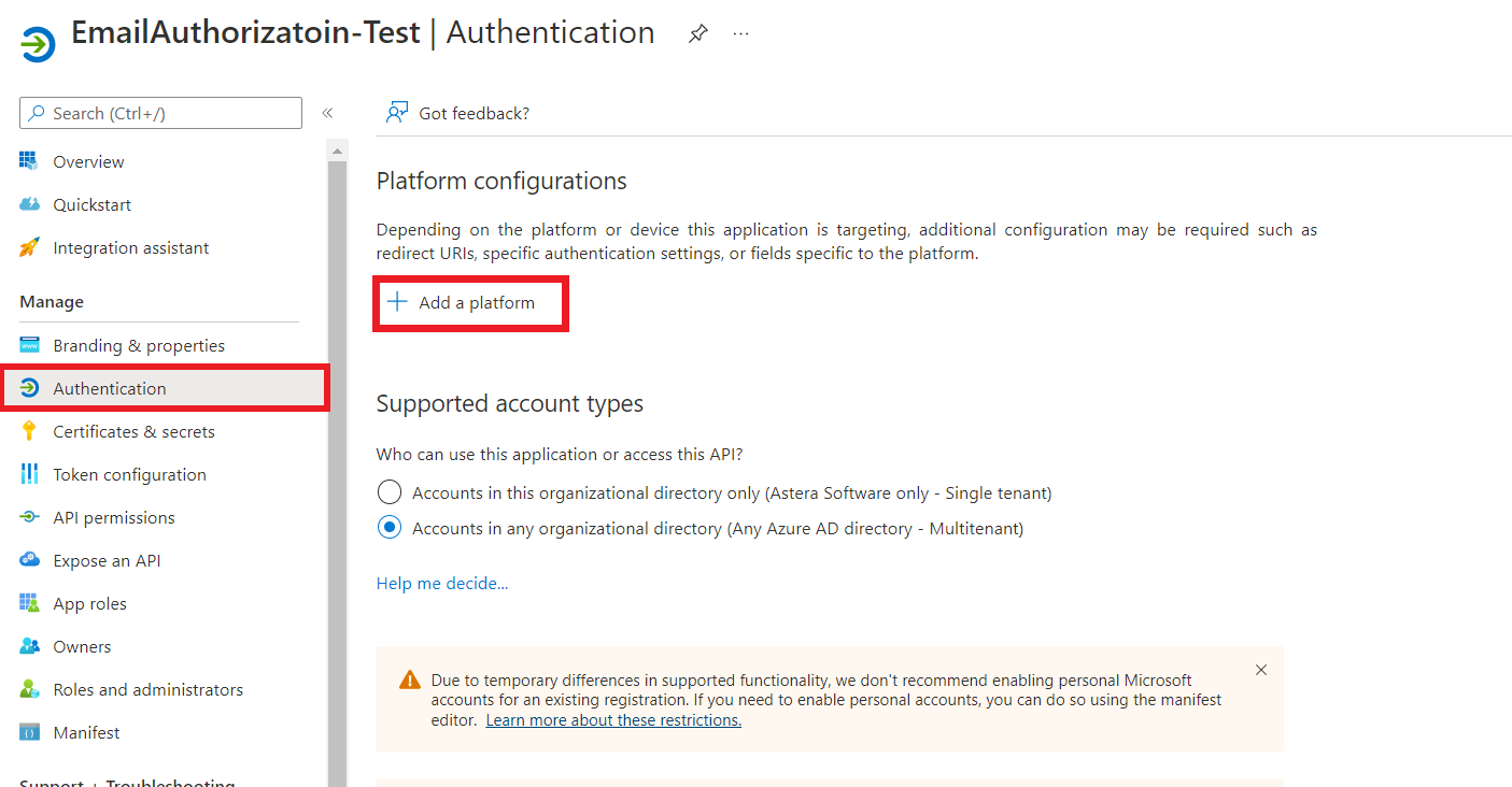 After creating an application, go to Manage > Authentication > Add a platform.