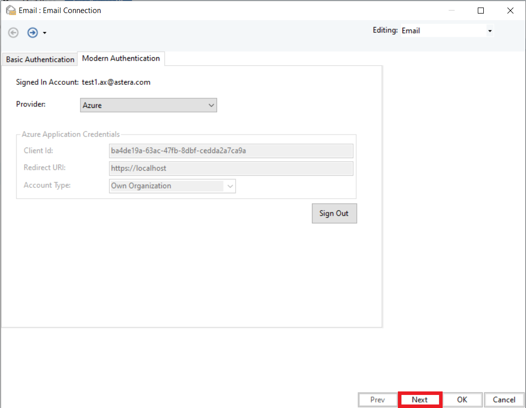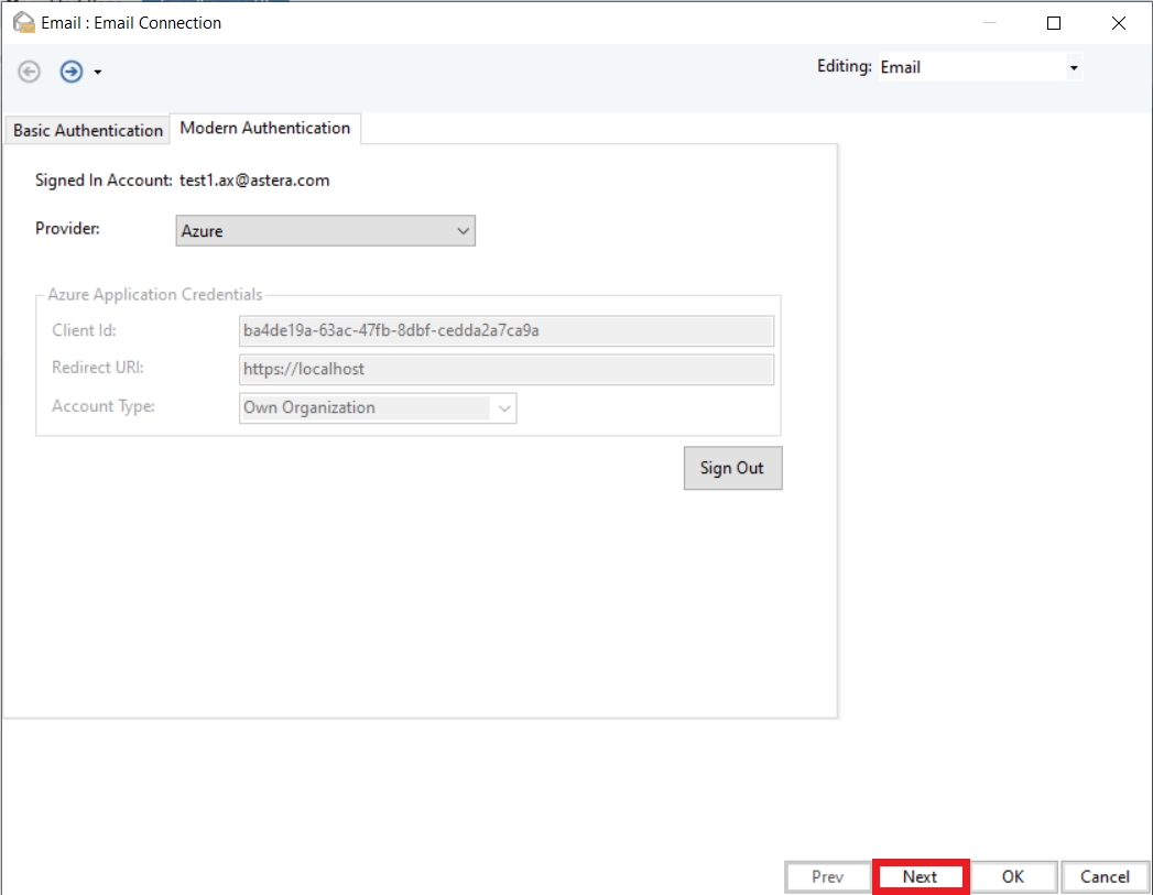 Let’s configure the Email Source object step-by-step using the Modern Authentication technique: