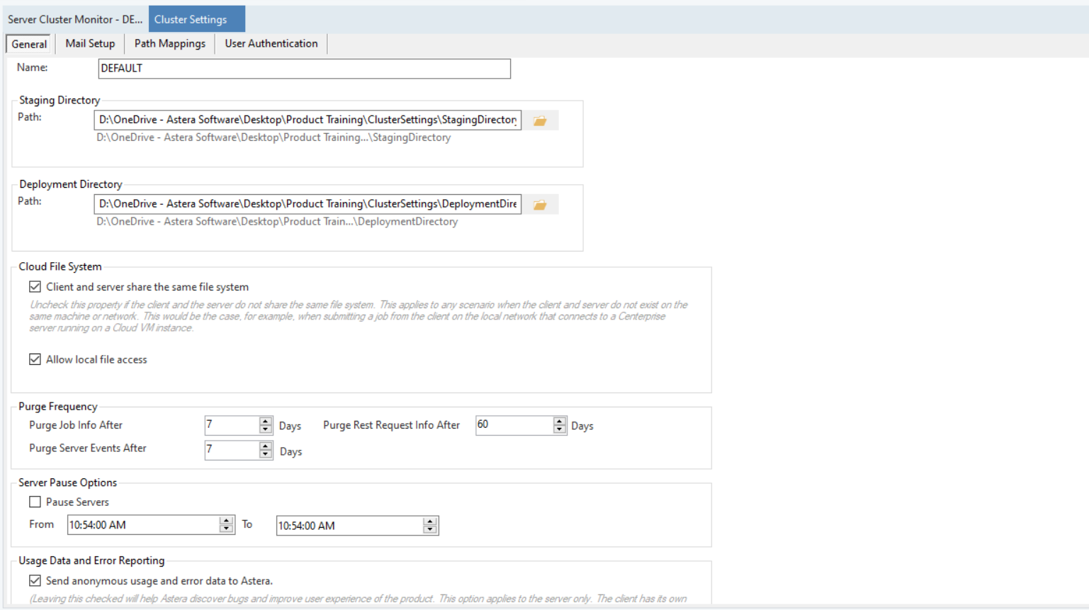 The *Cluster Monitor* and *Cluster Settings* help in managing the cluster database that you have made for Astera.