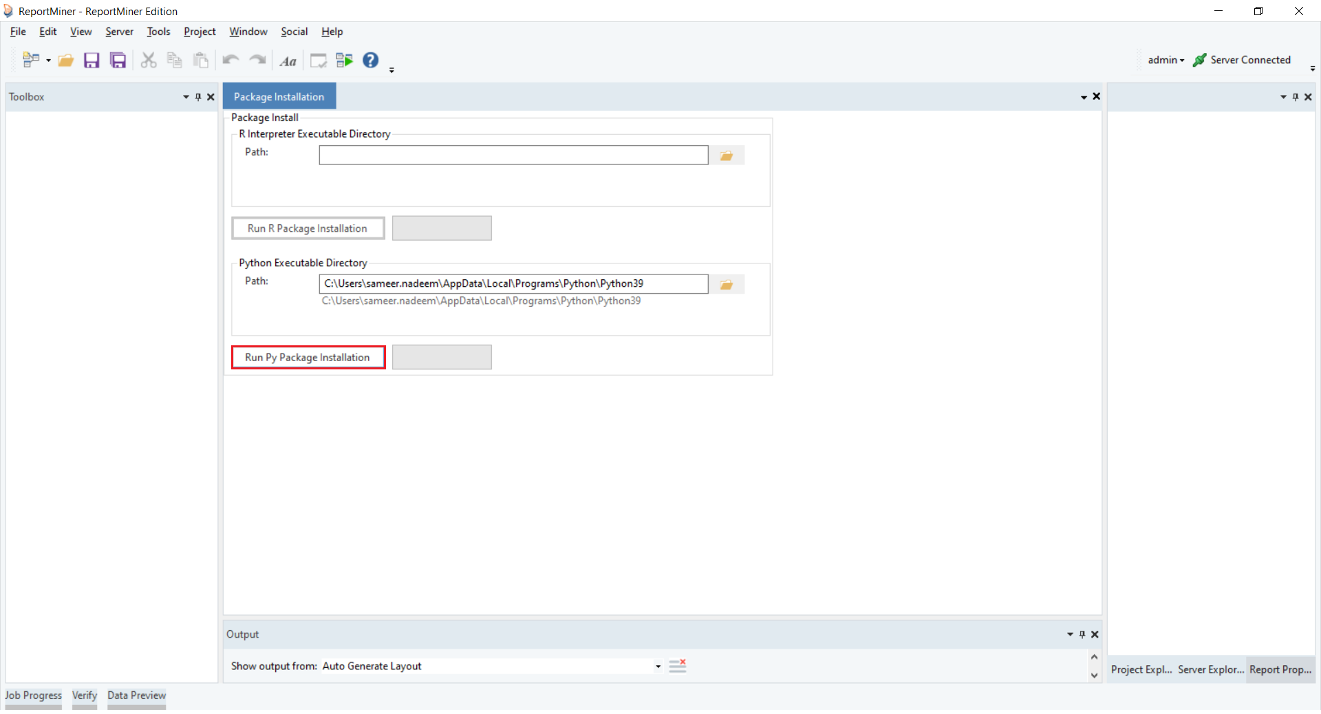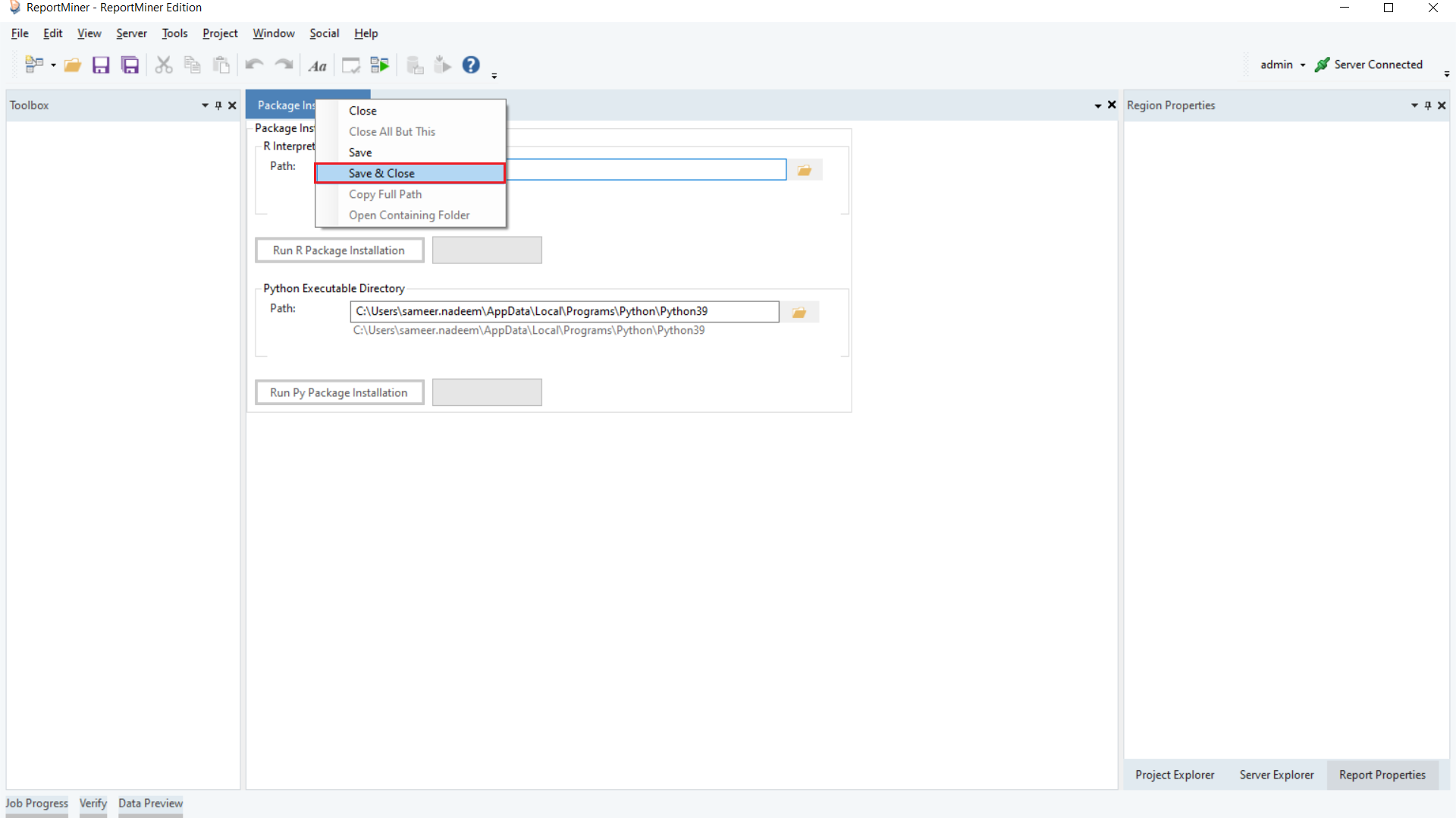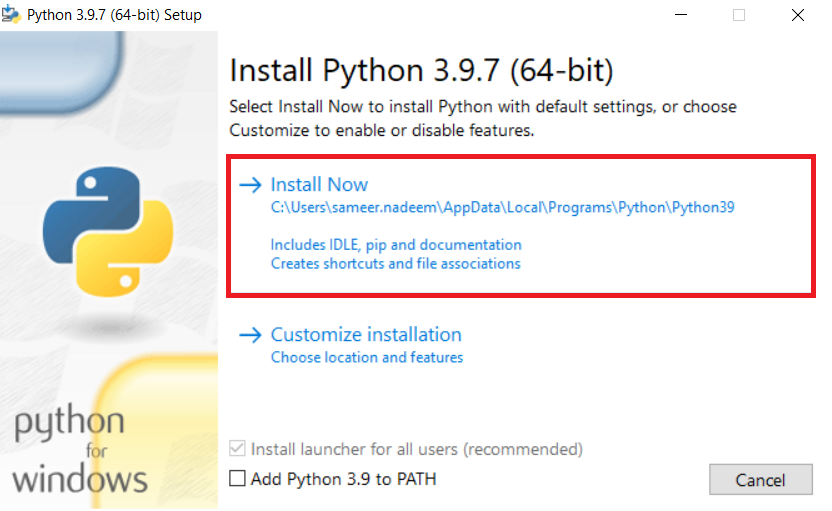 4. Provide the path of the Python39 folder in the File Path textbox. With the default directory installation, the file path would be C:\Users{username}\AppData\Local\Programs\Python\Python39.