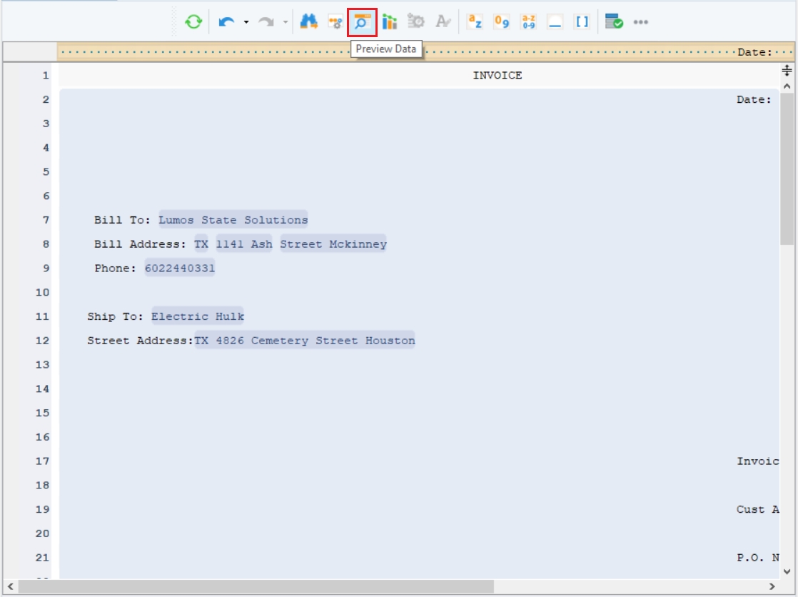 You can also preview the data using the Preview Data option from the toolbar. A Data Preview window will open showing the extracted regions and fields.