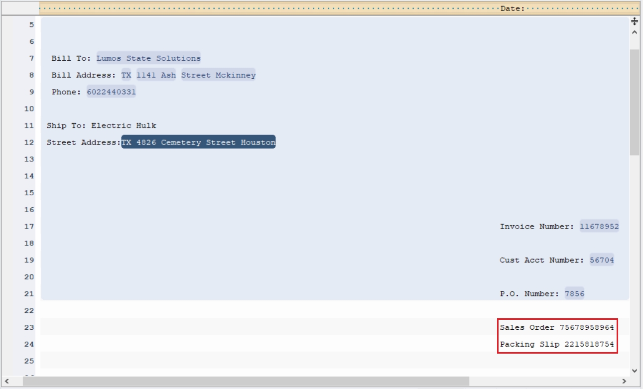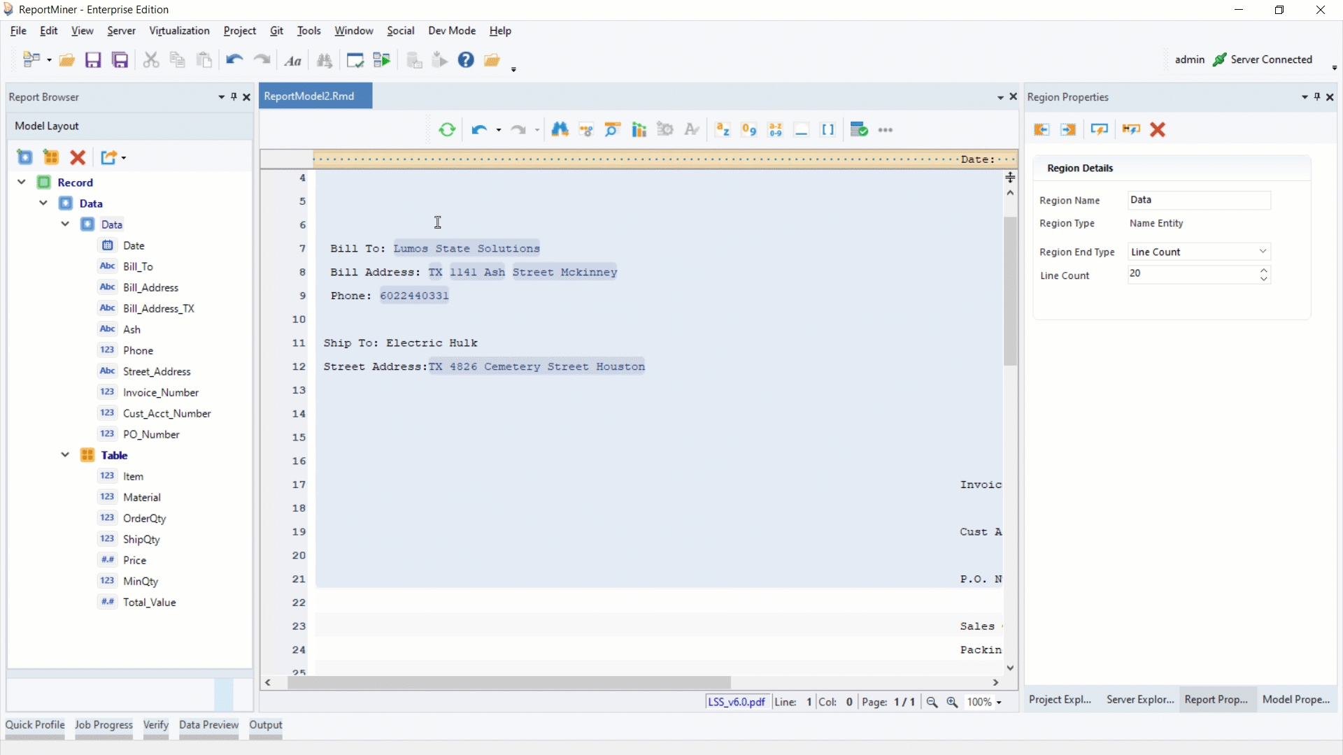 In this case, we have a PDF invoice for Lumos State Solutions opened in a report model.