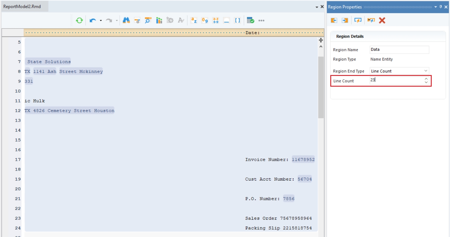 To fix this issue, we can increase the Line Count of the region in the Region Properties panel.