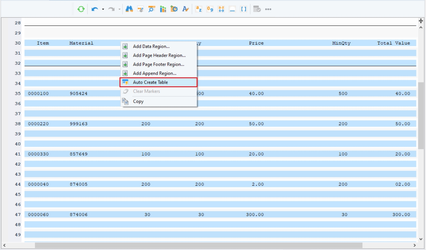 Right-click on the designer and select the Auto Create Table option from the context menu.