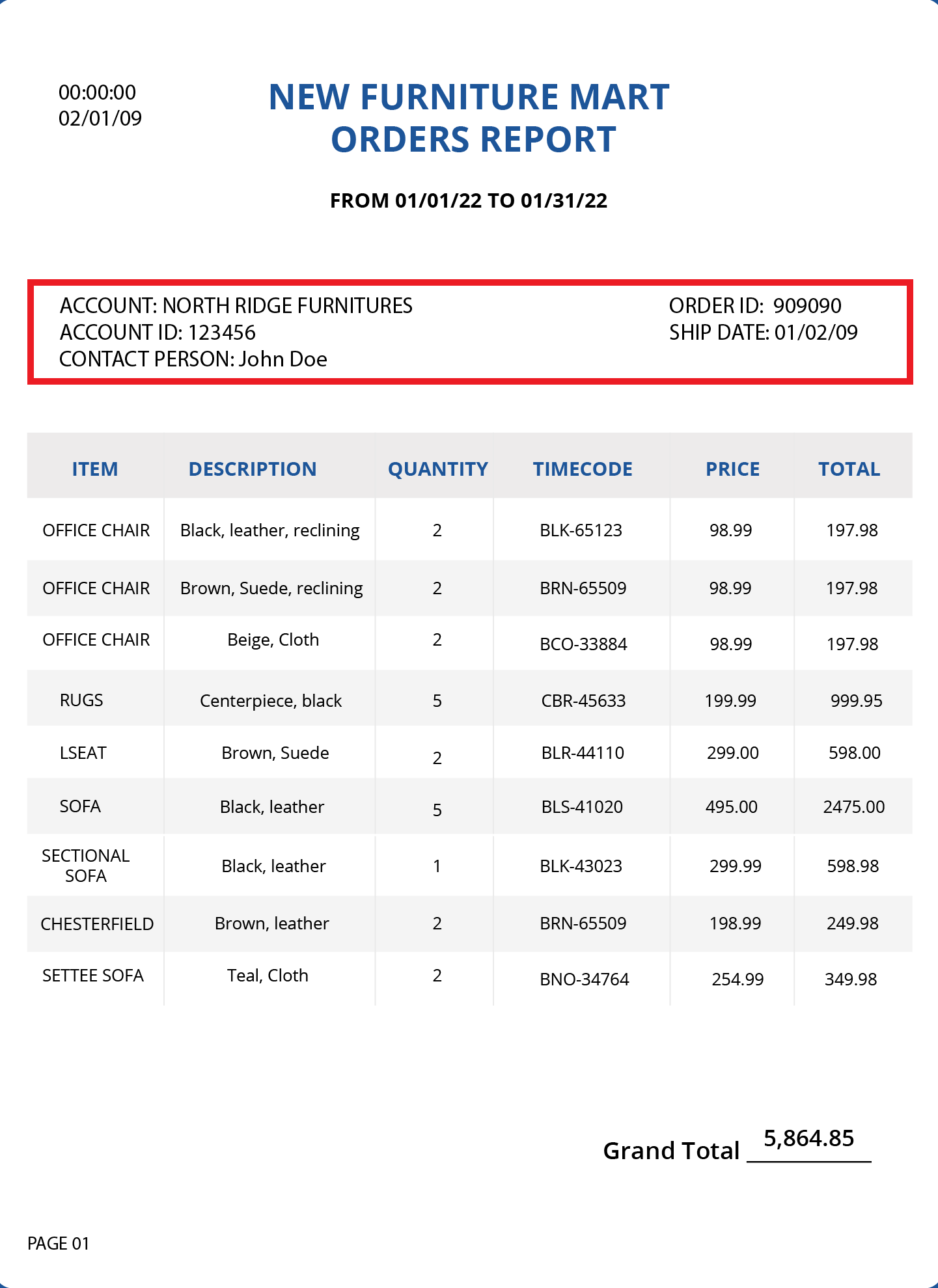 In the page 1 of the Orders Report (shown below), the first 3 lines can be extracted in a header region as they contain information about the time, date, from and title of the report. Moreover, these lines occur on every page of the report.