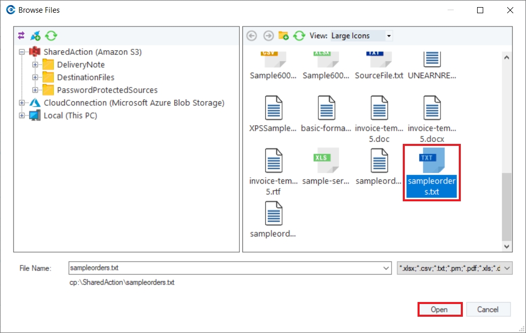 Here, we have selected the folder containing the source files from our Amazon S3 cloud connection. Click Open.