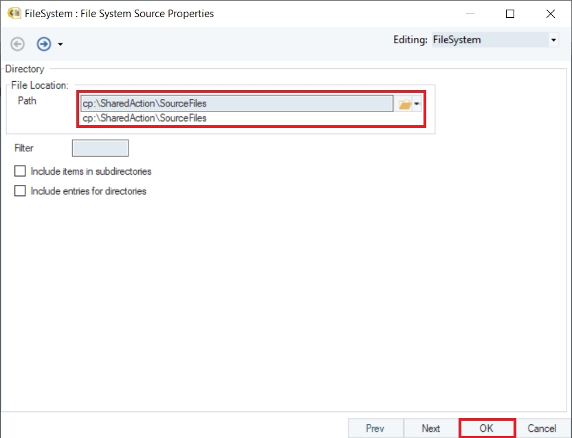 Your SharedAction.sact is now configured. You can access files from this cloud connection in the project.