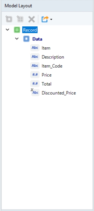 Right-click on top of the Report Model object header and select Properties from the menu.