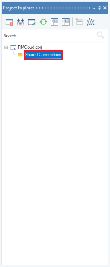 To add a shared connection, we need to create a new project first. Here, we have named our project RMCloud.cprj.