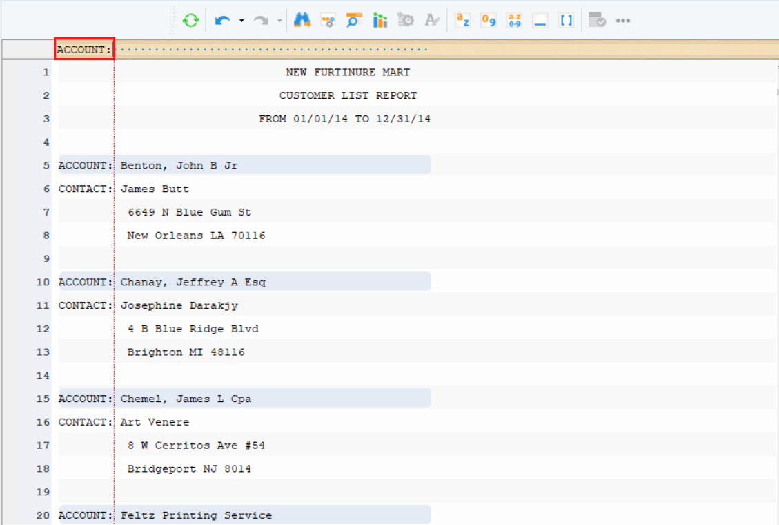 You can see that a single record spans over 4 lines on this PDF file. In order to capture this data and place it into different fields, we will use the Line Count feature.