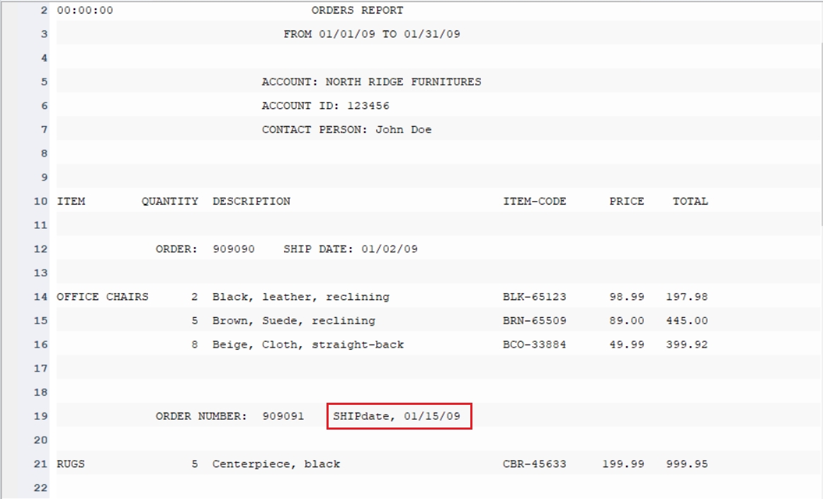 Here, you can see that a comma character is extracted along with the data because the comma after 'SHIPdate' is read as a separator and not as a part of the string.