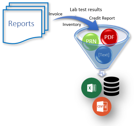 Extracted data can be directly exported to an Excel sheet, a delimited file, or to a database table such as Microsoft SQL Server, Access, PostgreSQL, MySQL, or ODBC.