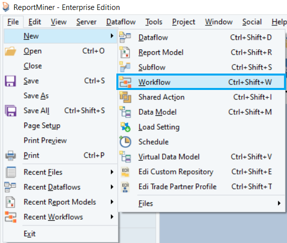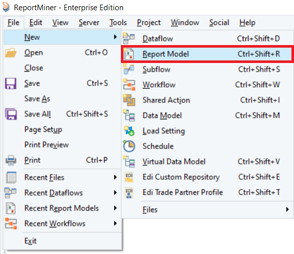 Open a Report Model in Astera by going to File > New > Report Model.