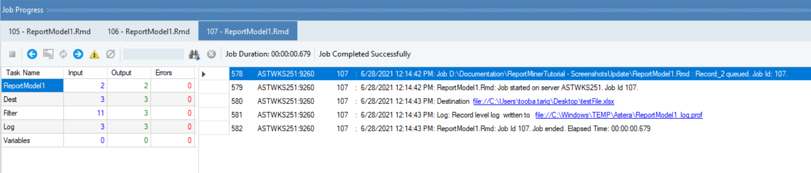 At the end of a successful run, a clickable link for the exported data file will be generated in the job trace. Click on this link and your exported data will open in Excel file.