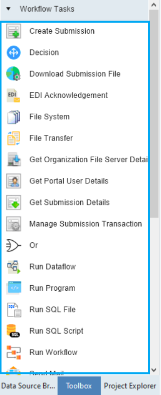 The Run Dataflow Task is placed under Workflow Tasks section of the Toolbox.
