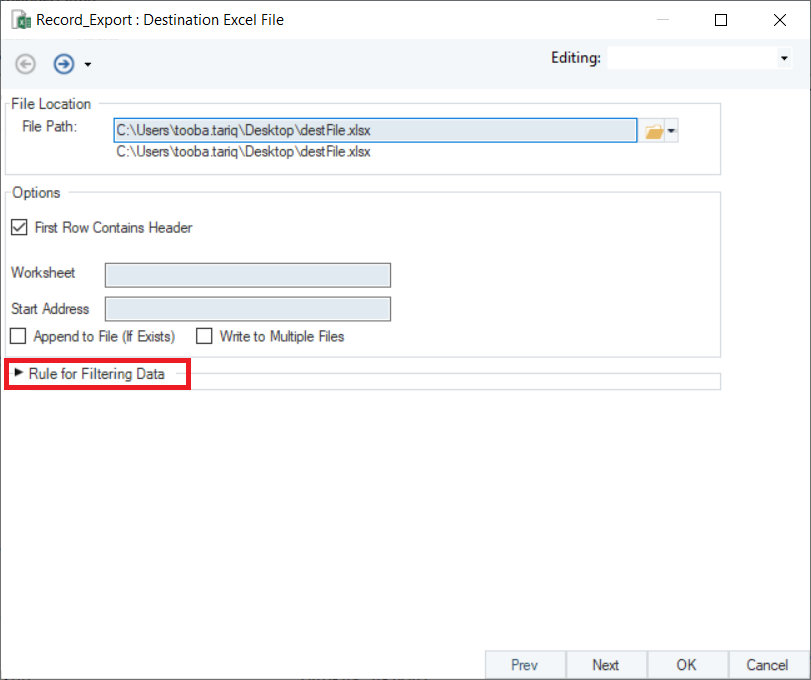 While exporting data from Astera, you have the option to send only filtered data to your export destination.