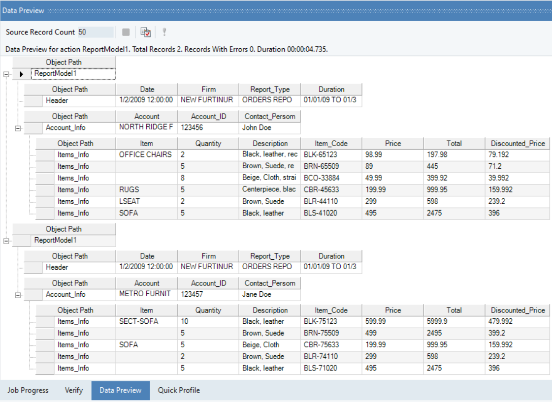 You can preview the extracted data by right-clicking on the source object and going to Preview Output.