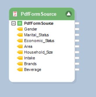 Once the source object has been configured, the PDF Form Source object on the dataflow designer will show the fields with layout defined in the PDF Form.