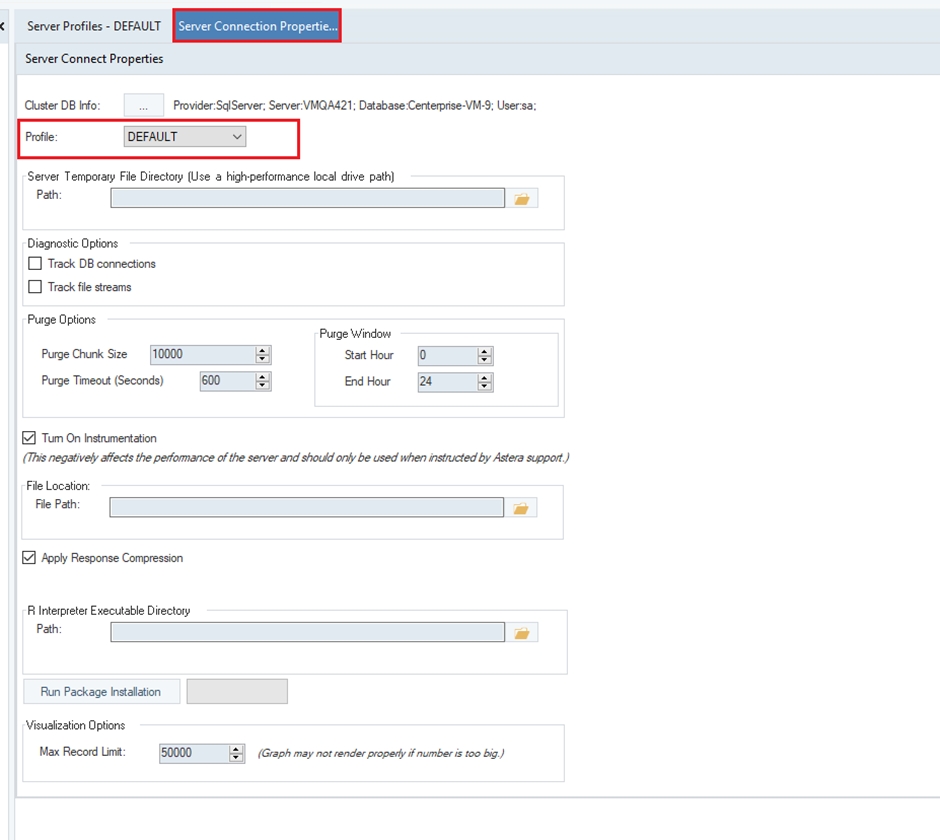 Here, we can see that a Server Profile named DEFAULT has been selected in our Server Properties.