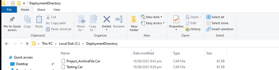 Archive file's (.car file's) deployment directory path, i.e, the path to the archive file that is uploaded in the deployment directory.