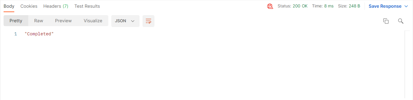 In the third step, we will make a GET call to fetch the job’s status by providing the job ID.