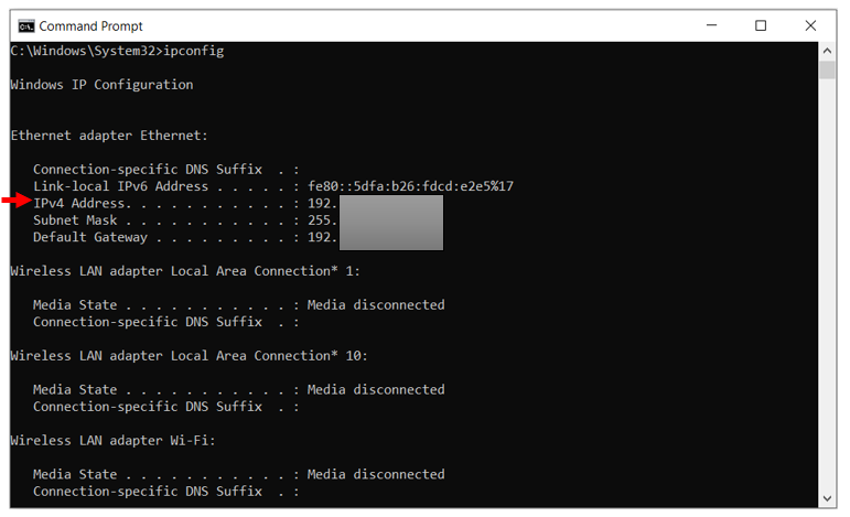 **Note:** You can get help of your network administrator to get the IP address of the machine where Astera Integration server is installed. Or you can launch the command prompt and type the command *ipconfig* to get the IP configuration details for the machine and use that information to provide Server URI.