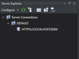 The client will now connect to the selected server. You should be able to see the server listed in the Server Explorer tree when the client application opens.