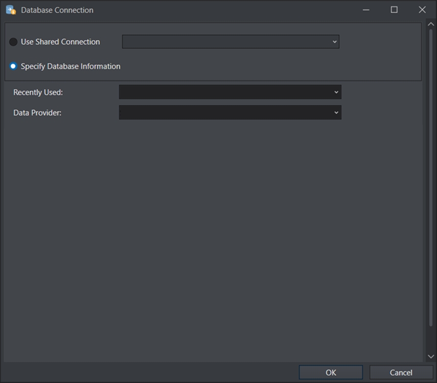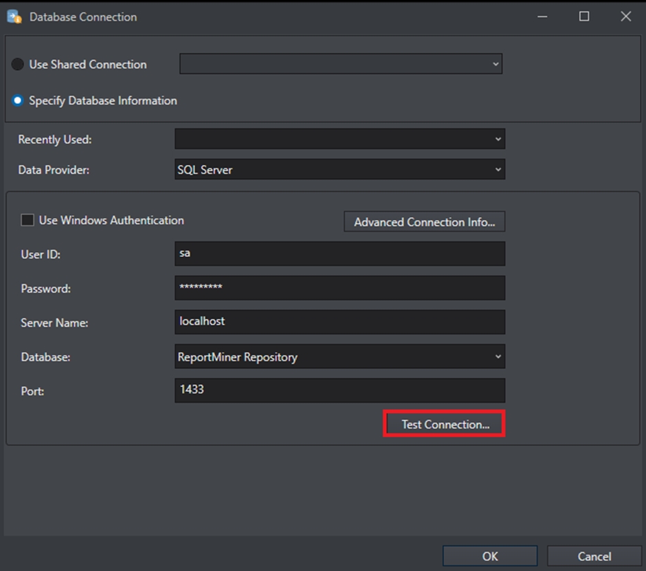 Select SQL Server from the Data Provider drop-down list and provide the credentials for establishing the connection.