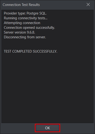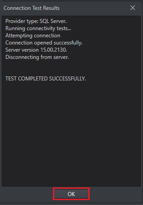Click Test Connection to test whether the connection is successfully established or not. You should be able to see the following message if the connection is successfully established.