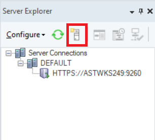 You can connect to different servers right from the Server Explorer window in the Client. Go to the *Server Explorer* window and click on the Connect to Server icon.