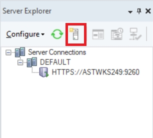 You can connect to different servers right from the Server Explorer window in the Client. Go to the Server Explorer window and click on the Connect to Server icon.