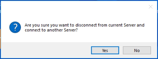 A prompt will appear that will confirm if you want to disconnect from the current Server and establish connection to a different server. Click Yes to proceed.