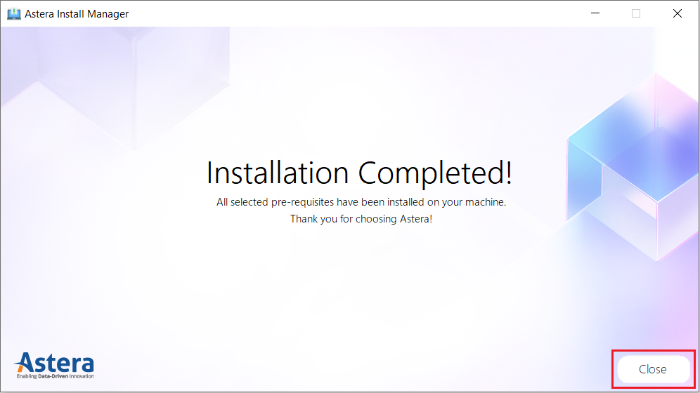 This concludes our discussion on how to use the install manager for Astera.