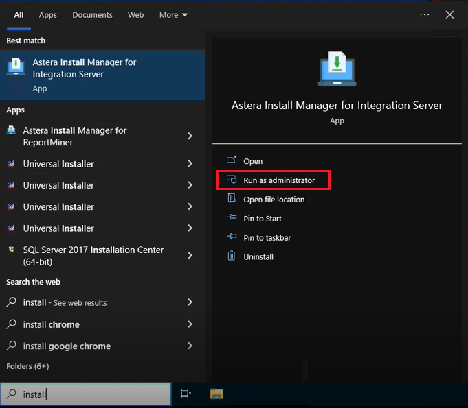 1. In order to access the install manager on the sever machine, open start and search for “Install Manager for Integration Server”.