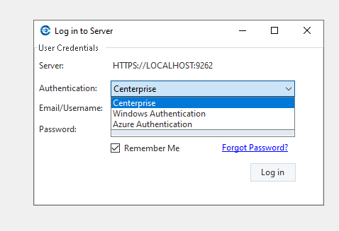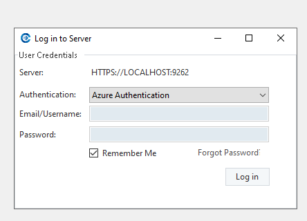 By selecting Azure Authentication, the email and password textbox will get locked. Click on Log In