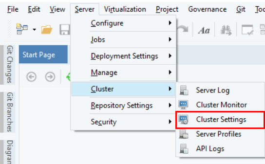 Go to Server > Cluster > Cluster Settings