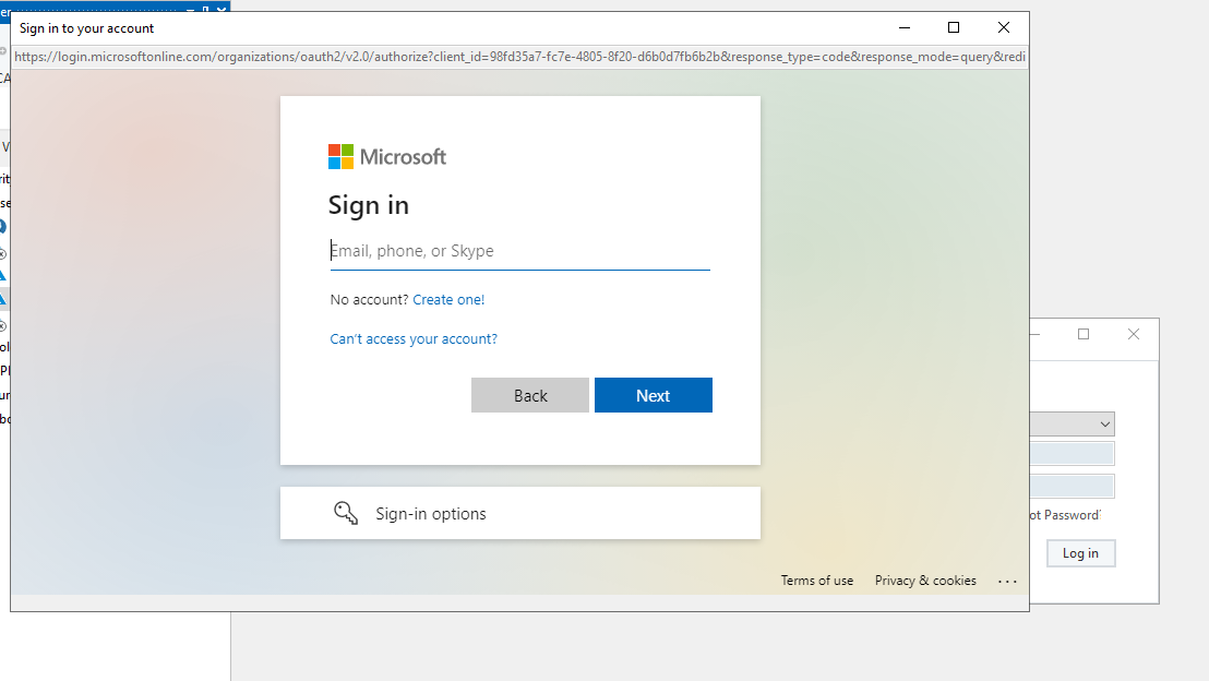Provide a valid Client Id, Redirect URI and Account Type
