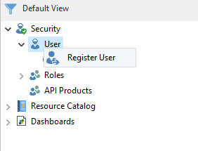 Here, in Security > User, right-click on User and select Register User