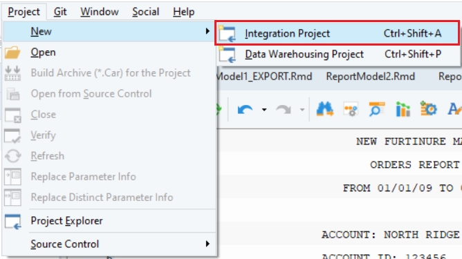 To create a project, go to Project > New > Integration Project.