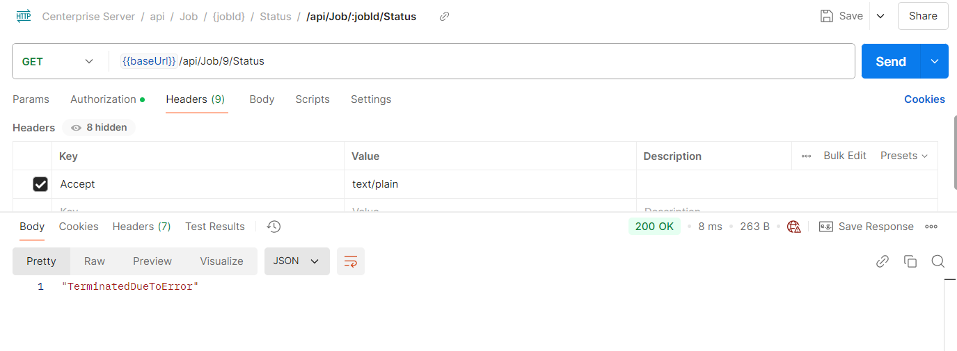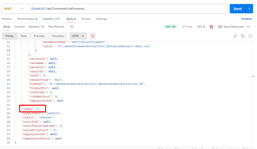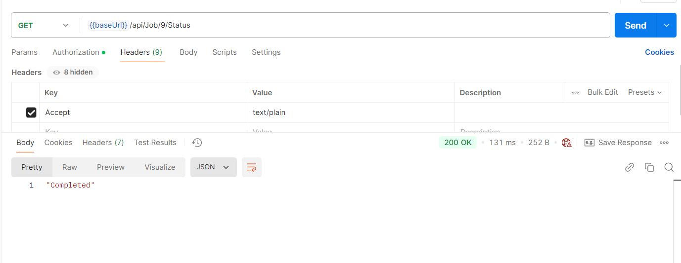To check the job status, use the jobID returned from the previous step.