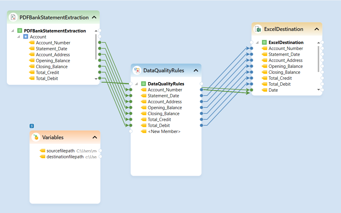 When the flow is run, structured data will be extracted from the unstructured pdf, passed through some custom data quality checks, and written to an excel file.