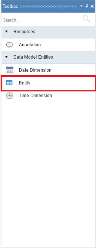 The next step in the process is to design a dimensional model that will serve as a destination schema for Stop-Stop’s data warehouse. You can use the Entity object available in the data model toolbox, and the data modeler’s drag-and-drop interface to design a model from scratch.
