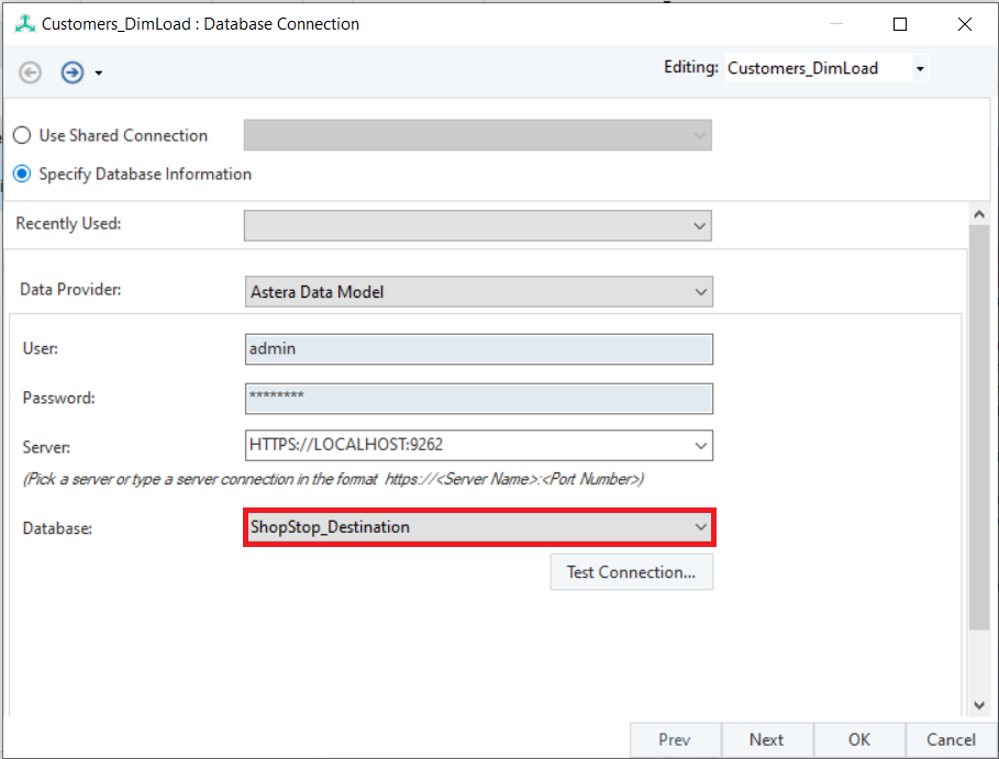 On the other hand, the Dimension Loader object was configured with the destination dimensional model’s deployment.