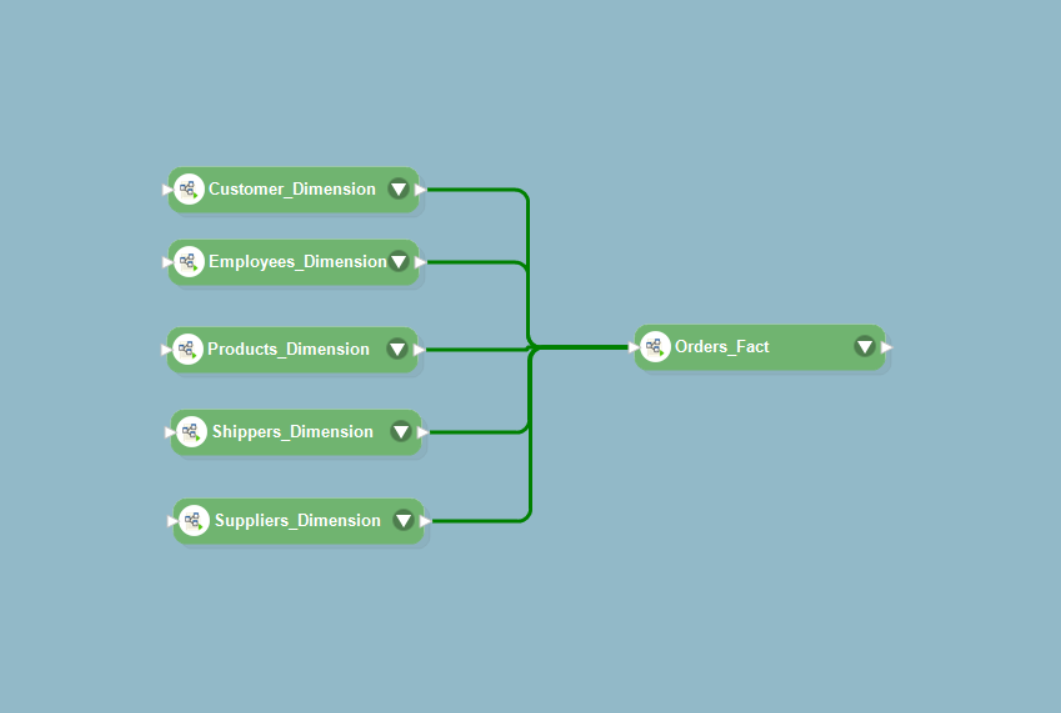 In this model, the Order and OrderDetails entities are the fact entities and the rest of them are dimension entities. To learn more about converting a data model into a dimensional model from scratch, click here.