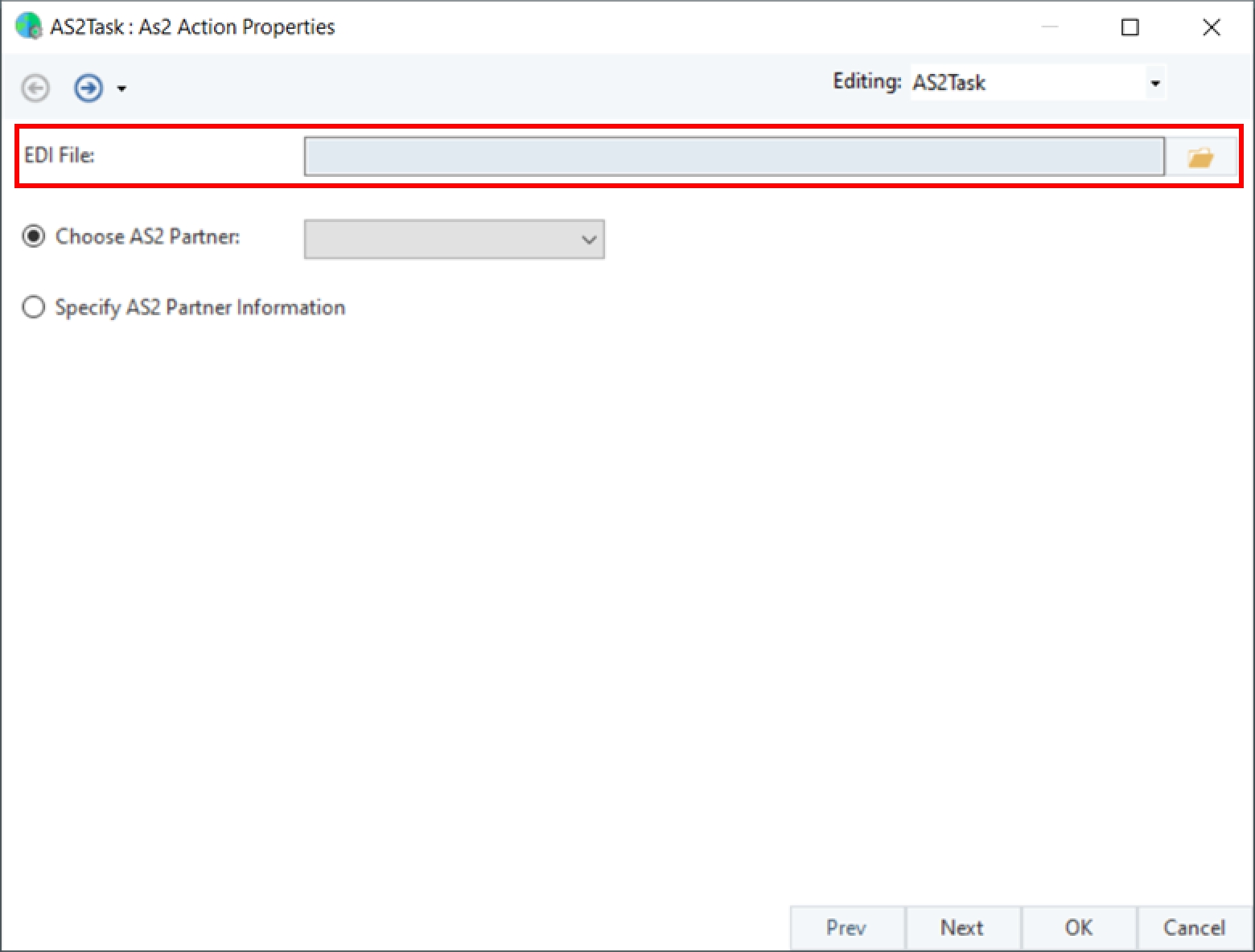 An AS2 Action Properties window will open, as shown below. Here, we will configure the properties of the AS2 Workflow task.