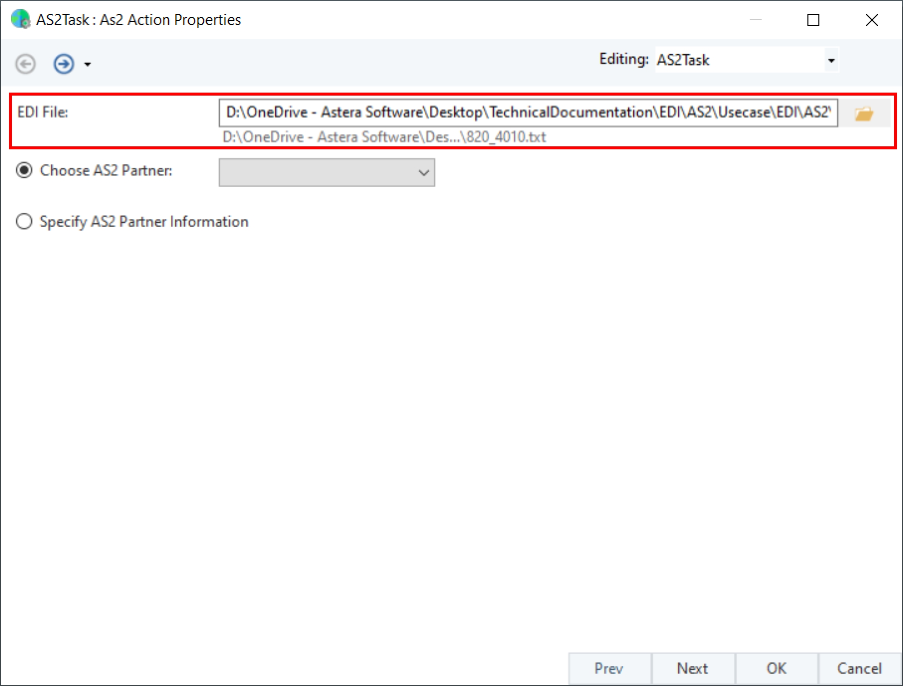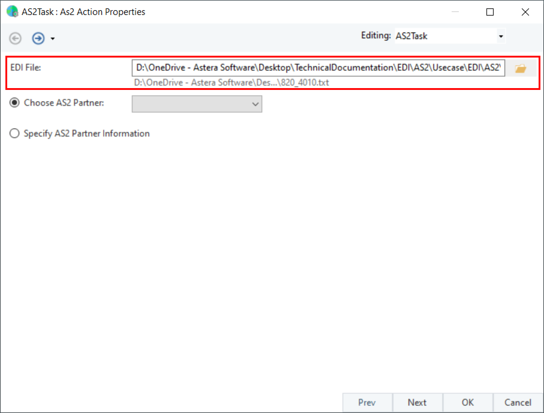 The AS2 Workflow task object in Astera allows us to send EDI files to a partner using the AS2 protocol.