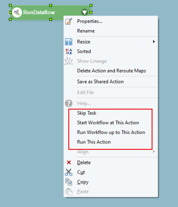 *Run Workflow up to This Action:* Runs a Workflow only until the selected task.