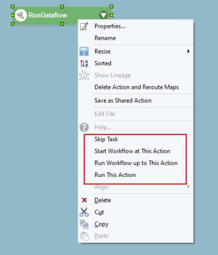 Start Workflow at This Action: Starts the Workflow from the selected task.